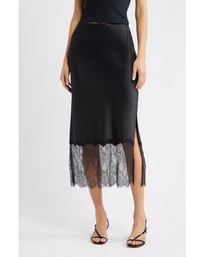 Lace Trim Satin Midi Skirt - Black
