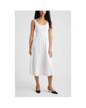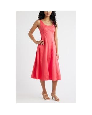 Seamed Strech Cotton Poplin Midi Dress - Red