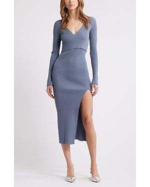 Luxe Long Sleeve Sculpt Rib Faux-Wrap Dress - Blue