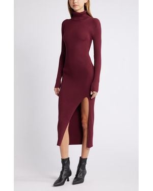 Rib Long Sleeve Turtleneck Sweater Dress - Red