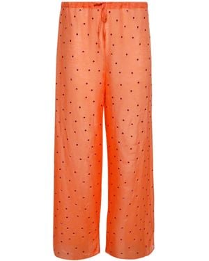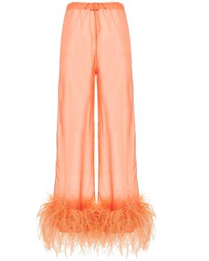 Feather-Trimmed Embellished Wide-Leg Pants - Orange