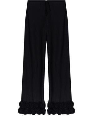 Floral-Appliqu Pants - Black