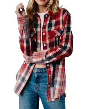 Plaid Flannel With Bleached Dipped Contrast Shirt - Red