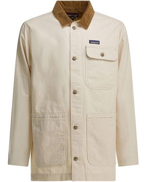 Classic Casual Jacket With Ribbed Velvet Collar And Button Placket - Natural