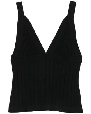 Jean Ribbed-Knit V-Neck Tank Top - Black