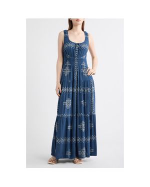 Athena Long Sleeve Linen Blend Maxi Dress - Gray