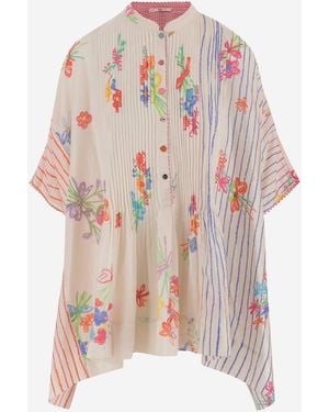 Silk And Cotton Shirt With Floral Pattern - White