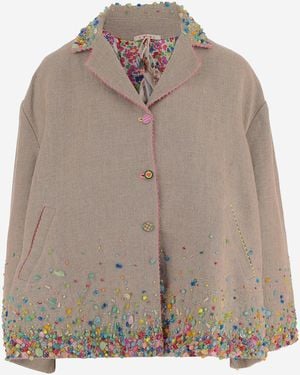 Linen Jacket With Beads - Brown