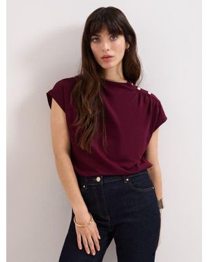 Paige Ruched Shoulder Hardware Ponte Top - Red