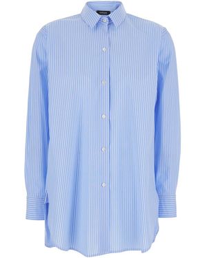 Shirt With Classic Collar And Curved Hem - Blue