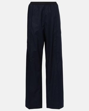 High-Rise Cotton Straight Pants - Blue