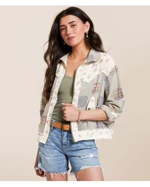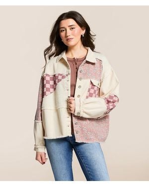 Pieced Floral Checkered Denim Shacket - Natural