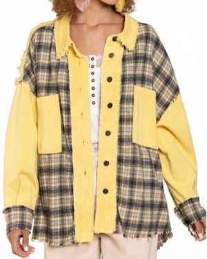 Oversized Distressed Edge Detail Plaid Shacket - Yellow