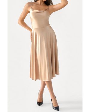 Shapewear Strappy Cowl Neck Fit & Flare Midi Dress - Red