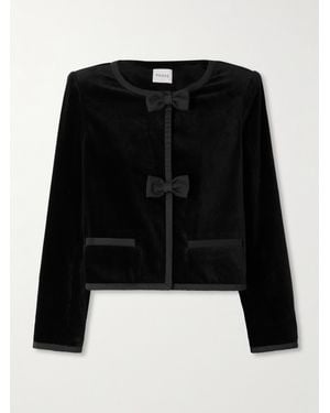 Quincy Cropped Satin-Trimmed Cotton-Velvet Jacket - Black