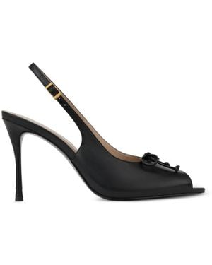 Bow-Detail Peep-Toe Pumps - Black