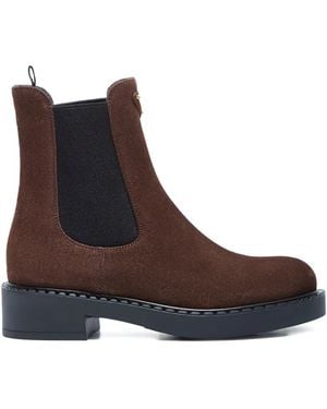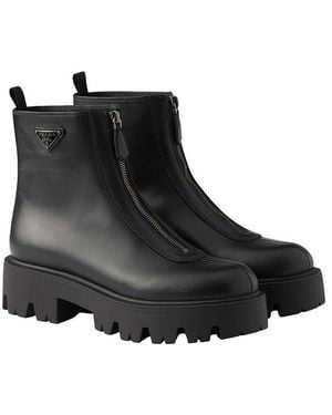 Discover the embodiment of luxury footwear with our selection of Prada boots, a testament to the label's skilled Italian craftsmanship and innovative design. Navigate through a curated array of Prada's finest leather, suede, and Re-Nylon booties, from the resolutely chic Triangle-logo Chelsea boots to the trailblazing Monolith combat boots. Each pair reflects Prada's heritage in creating timeless pieces, blending functionality with high fashion. Indulge in the elegance of Prada ankle boots or experience the label's iconic fusion of classic and contemporary with their statement block-heel designs. Fashion literate and pragmatically styled, these boots ensure sophisticated presence in any collection, becoming an indispensable luxury that transcends seasons.