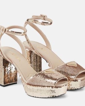 Sequined Satin Platform Sandals - Metallic