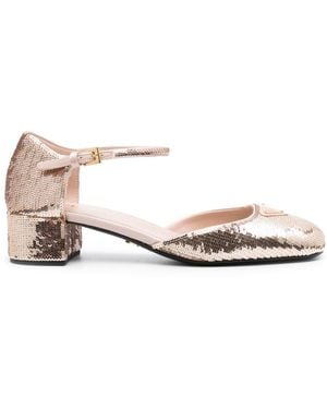 35Mm Sequined Pumps - Natural