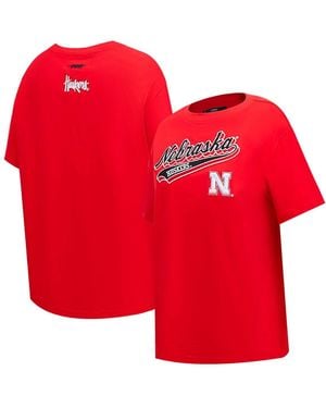Nebraska Huskers Script Tail Oversized Boyfriend T-shirt - Red