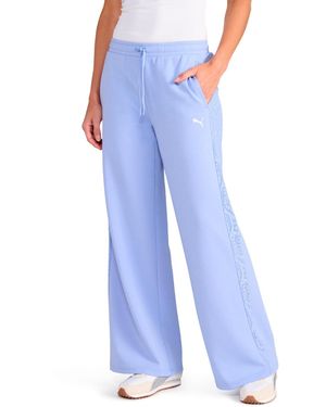 Lace Detail Wide Leg Mid Rise Pants - Blue