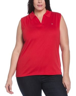 Plus Size Ribbed V-neck Sleeveless Polo T-shirt - Red