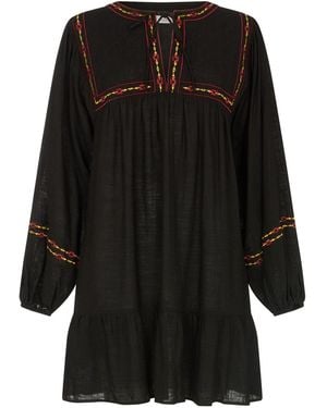 Charlie Swing Embroidered Mini Dress - Black