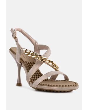 Domeda Metal Chain Embellished Sandals - White