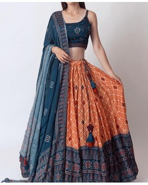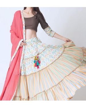 Bandhani And Ajrakh Print Chaniya Choli - White