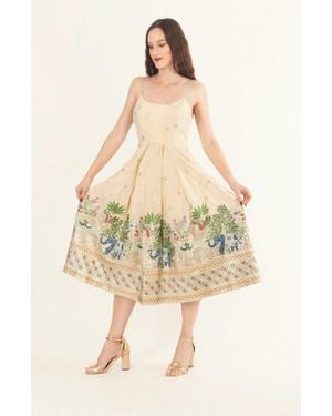 Blanche Box Pleated Midi Dress - Natural