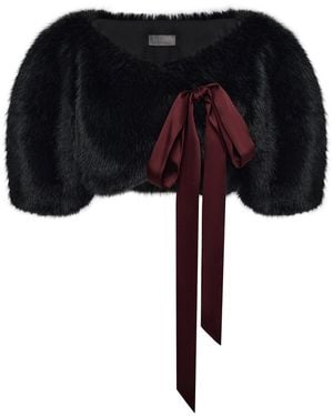 Bow-Detailed Faux Fur Bolero - Black