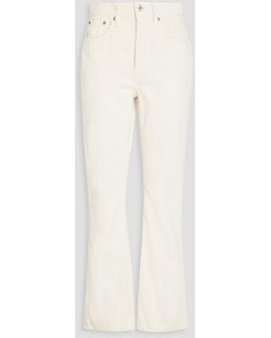 Flared Cropped Corduroy Pants - White