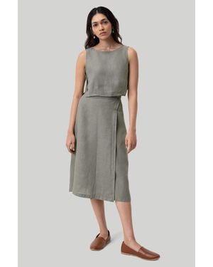 Hemp Overlap Midi Skirt - Multicolor