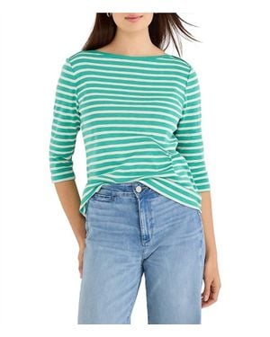 Stripe Three Quarter Sleeve Boat Neck Tee - Blue