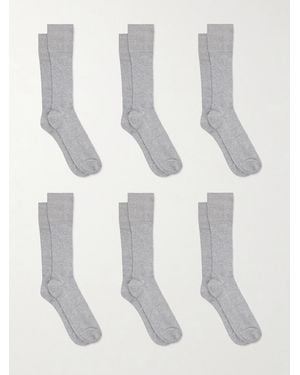 Set Of Six Ribbed Cotton-Blend Socks - White