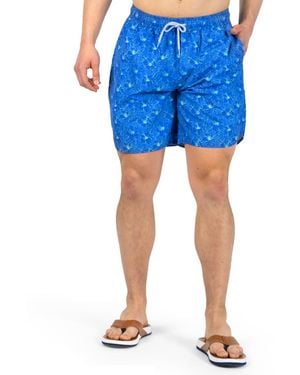Fish Party Slim Fit Short Sleeve Button-Down Shirt - Blue