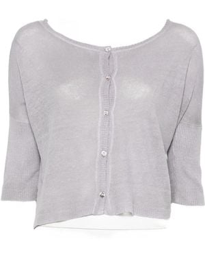 Laminated Scratched Effect Moss Stitch Cardigan - Gray