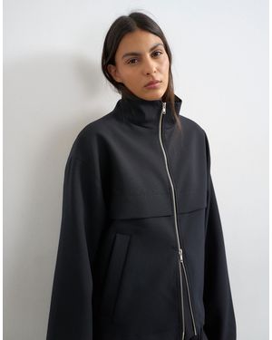 Washed Zip Front Jacket With Contrast Cord Collar - Natural