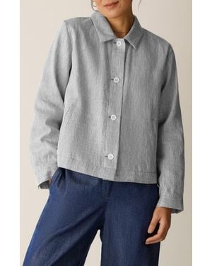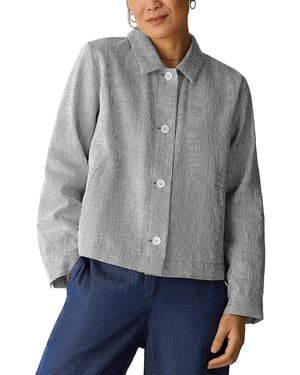 Stripe Classic Collar Linen Blend Jacket - Gray