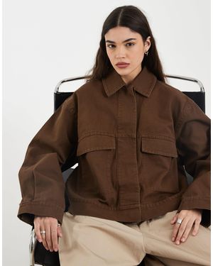 Cropped Washed Cotton Utility Jacket - Brown