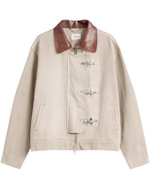 Pinstripe Organic Cotton Denim Utility Jacket - Blue