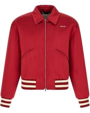 Aces Satin Club Bomber Jacket Viscose Down Jacket, Parka, Casual - Red