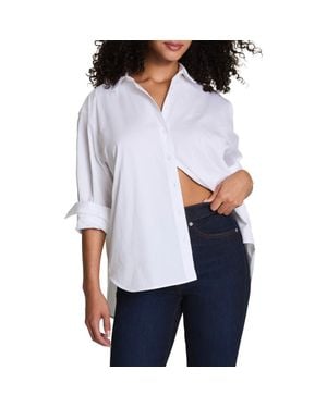 Lightweight Stretch Satin Button-Up Shirt - Blue