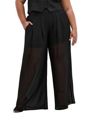 Bikini Top And Mesh Wide Pant Jumpsuit - Blue