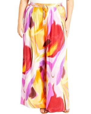 Floral Stretch Cotton Drawstring Wide Leg Pants - Red