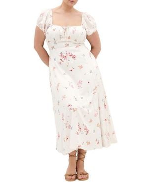 Abbie Floral Short Sleeve Midi Sundress - White
