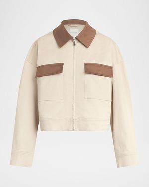 The Jade Denim Button-Up Peplum Jacket - Blue