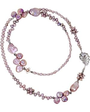 Opulent Rose Petal Pearl Cascade Necklace - Pink
