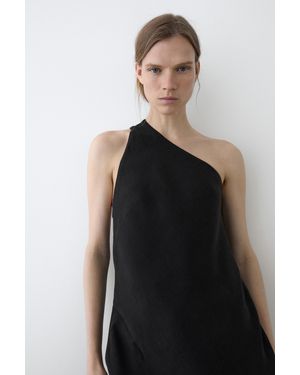 Asymmetric Linen Blend Top With Back Detail - Black