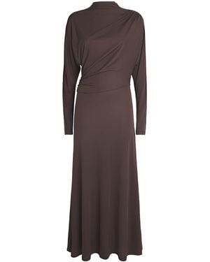 Jersey Draped Maxi Dress - Brown